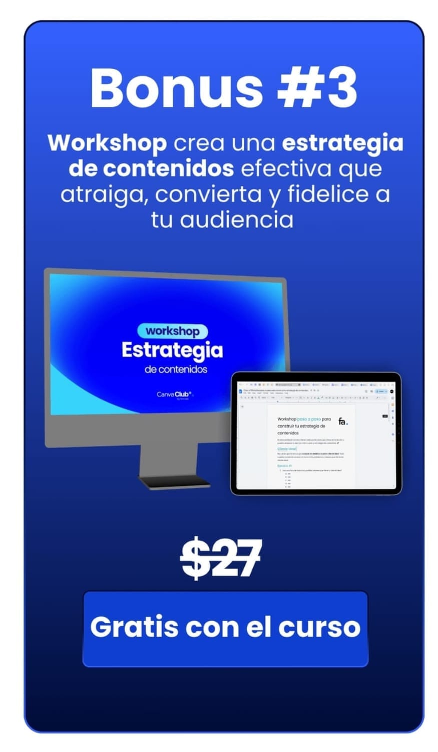 Poder crear diferentes tipos de contenido enfocados a visibilidad, engagement y conversión para que puedas ponerlos en práctica desde el primer momento sin perder meses intentando entender todo por tu cuenta
