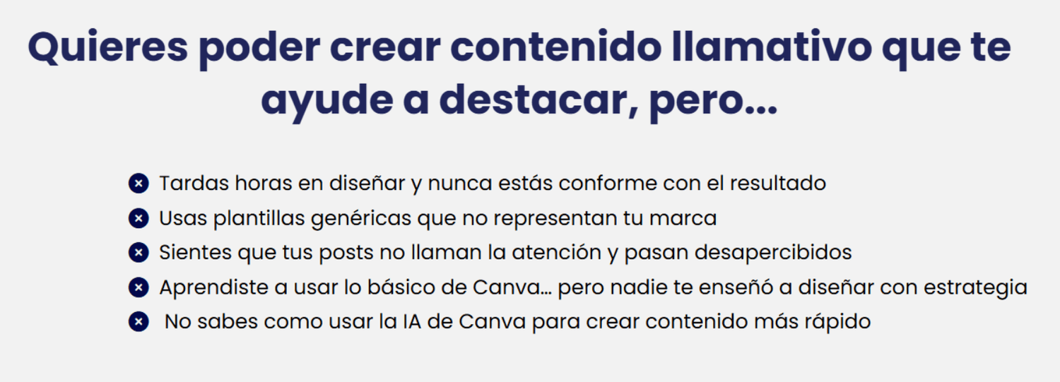 Este no es otro curso más de Canva, de hecho, es lo OPUESTO a lo que la mayoría de cursos te enseñan, donde solo te muestran cómo usar la plataforma y sus funciones
