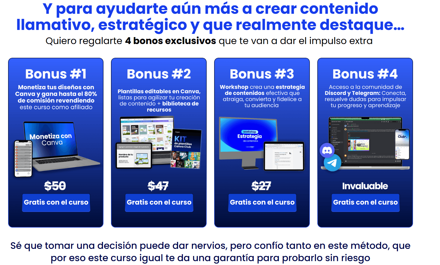 Quiero regalarte 4 bonos exclusivos que te van a dar el impulso extra