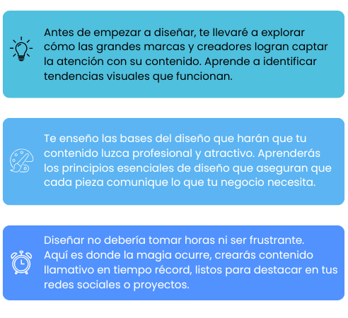 Este es el único curso que combina creatividad + estrategia + diseño visual para emprendedores que quieren destacar y no quedarse en lo básico ⚡️
